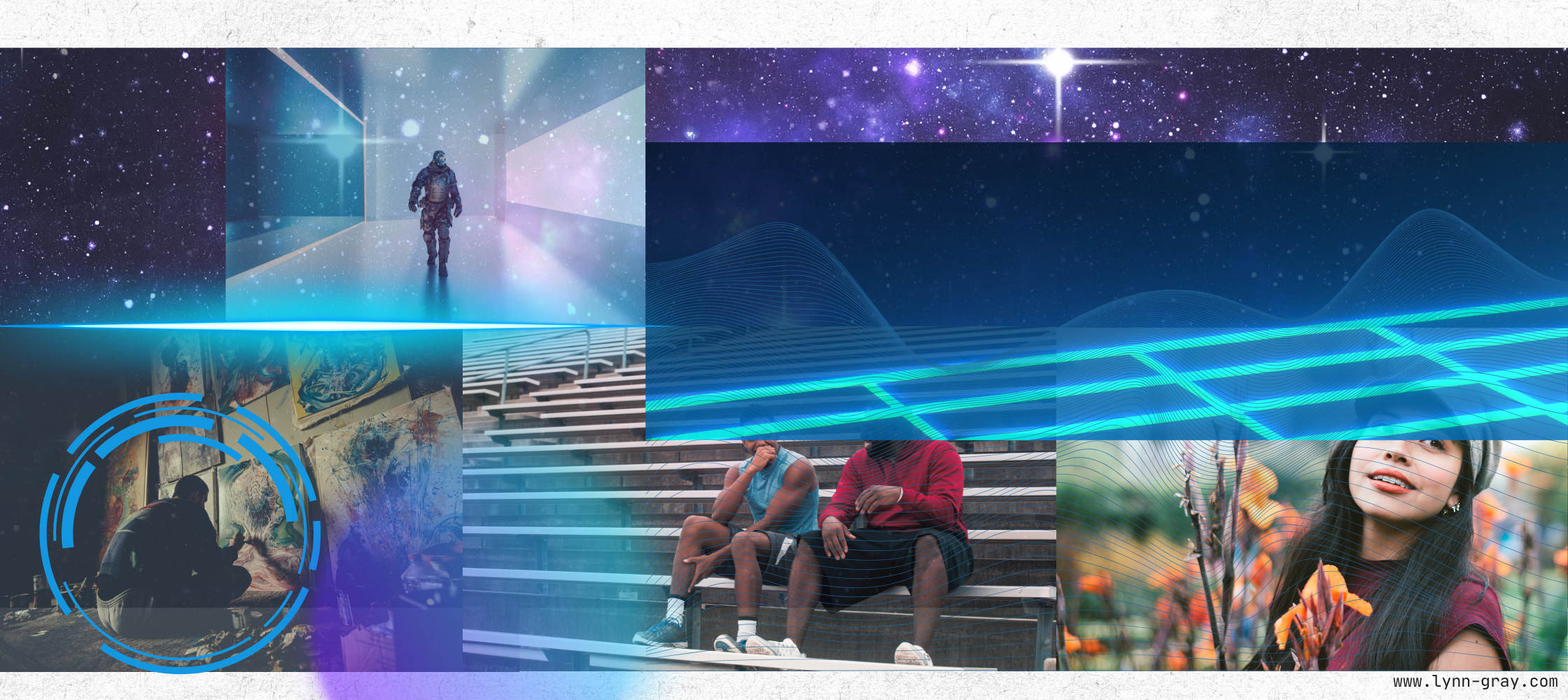 A collage of science fiction characters. Stock photos from Canva Pro Lisence